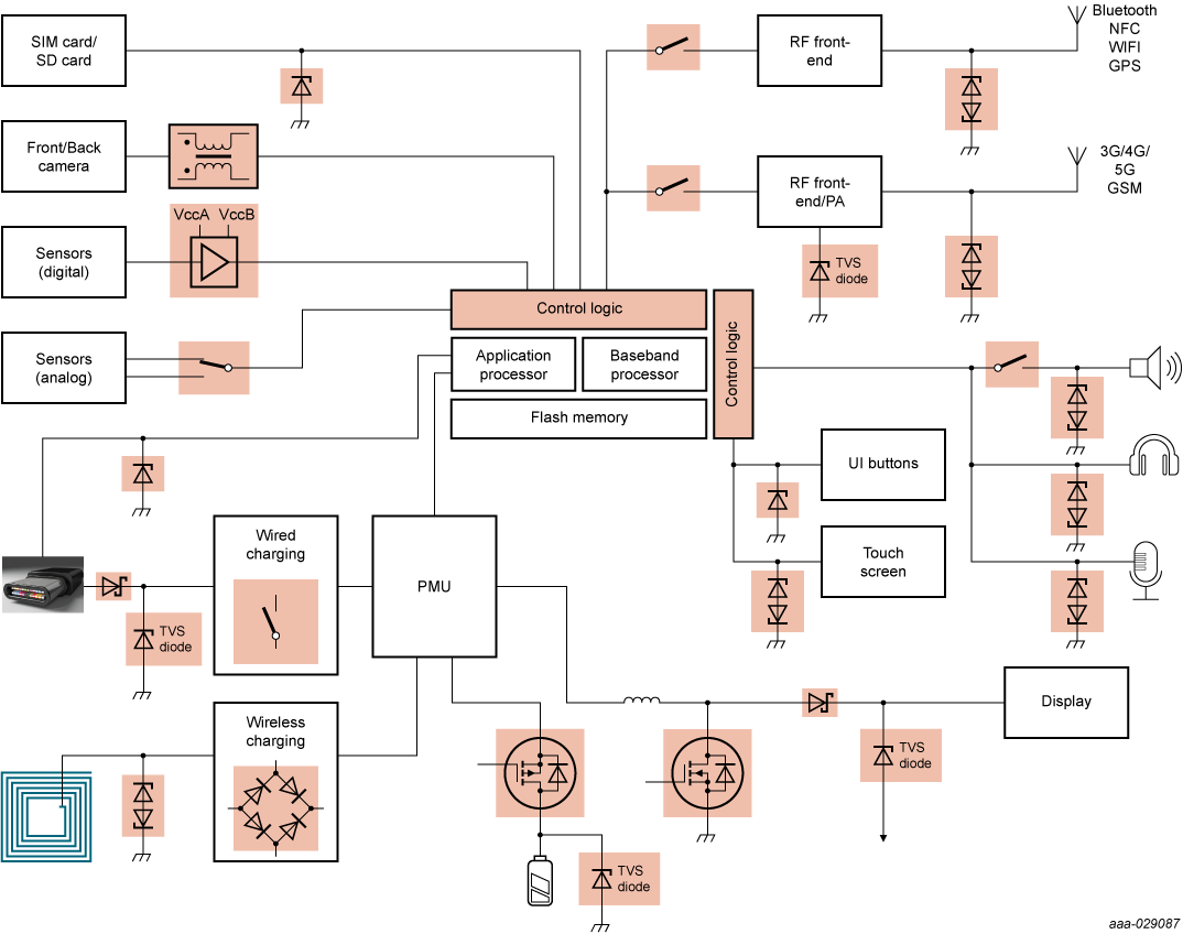 - For more power efficient wired charging, the inline Schottky diode can be replaced by two back-to-back MOSFETs
