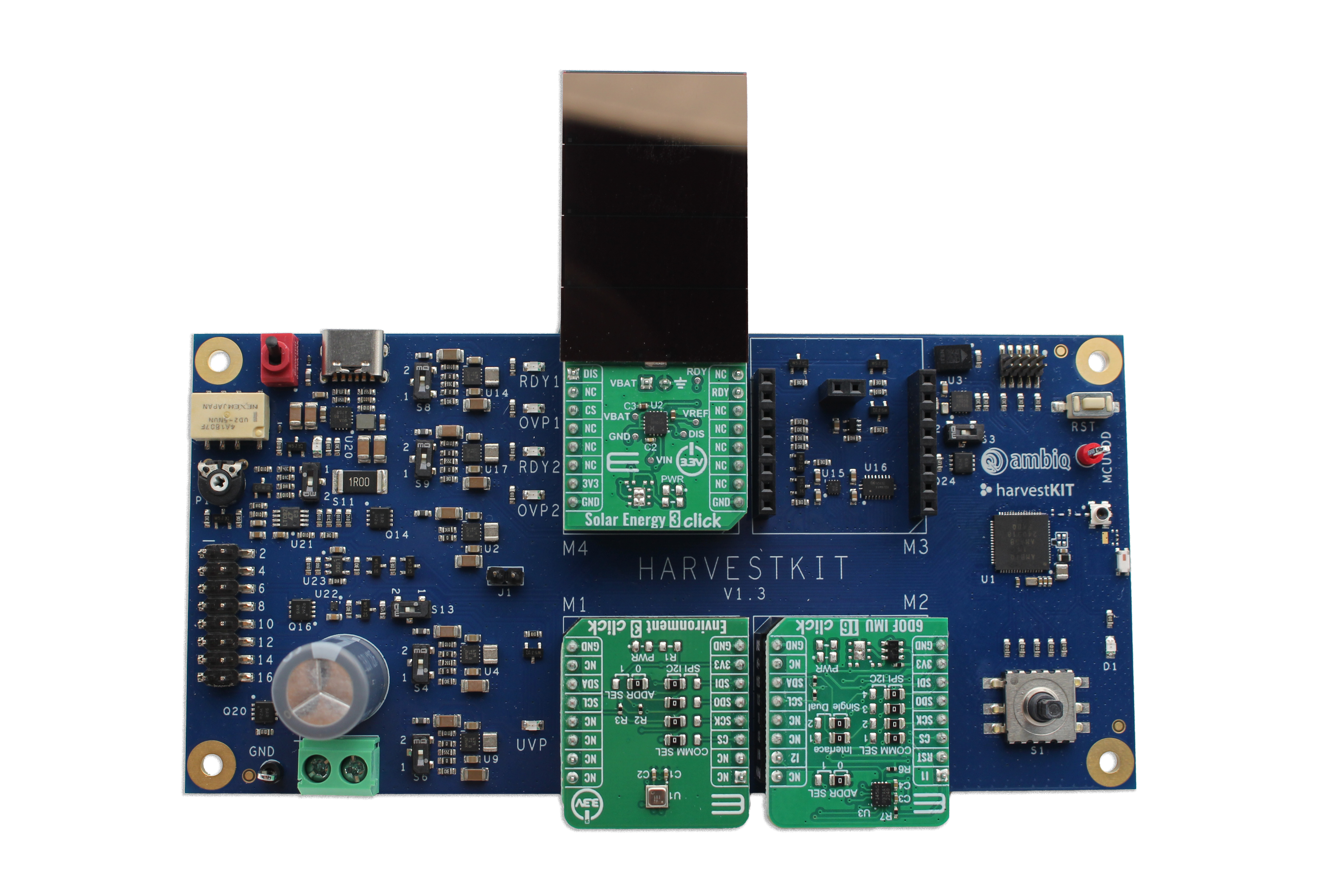 The harvestKIT™ AMA3BHARV1 is a versatile energy harvesting reference design platform that extends battery life by drawing energy from the environment or eliminates the need for batteries entirely by incorporating super capacitors and other energy storage elements. This sensing platform is powered by Nexperia's NEH2000BY inductorless energy harvesting PMIC.